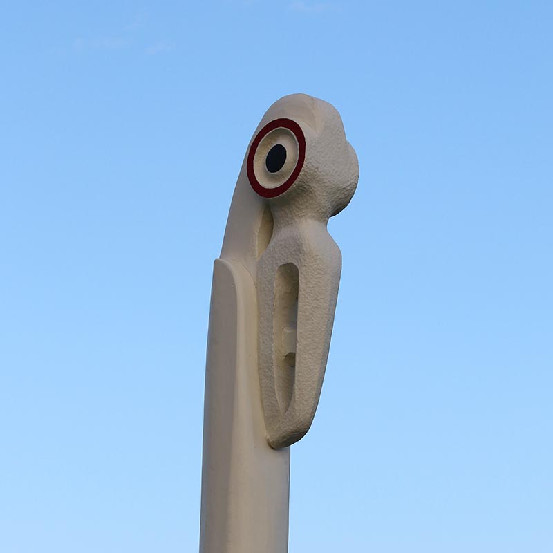 The bridge also displays the Mahi Toi (artwork) designed and crafted by Reuben Kirkwood on behalf of Iwi, including the Aurei (cloak pin) carving located at the Milldale approach to the bridge. The Aurei acts as a metaphor, holding the bridge to the land, and is accompanied by a weave design on the bridge pathways and sidings symbolising industry, with the colours of red and green provided by the nearby stand of Rewarewa trees.